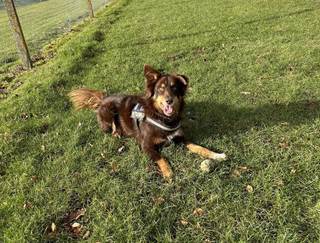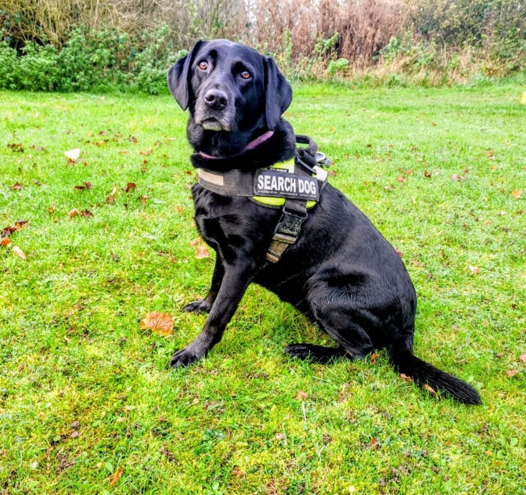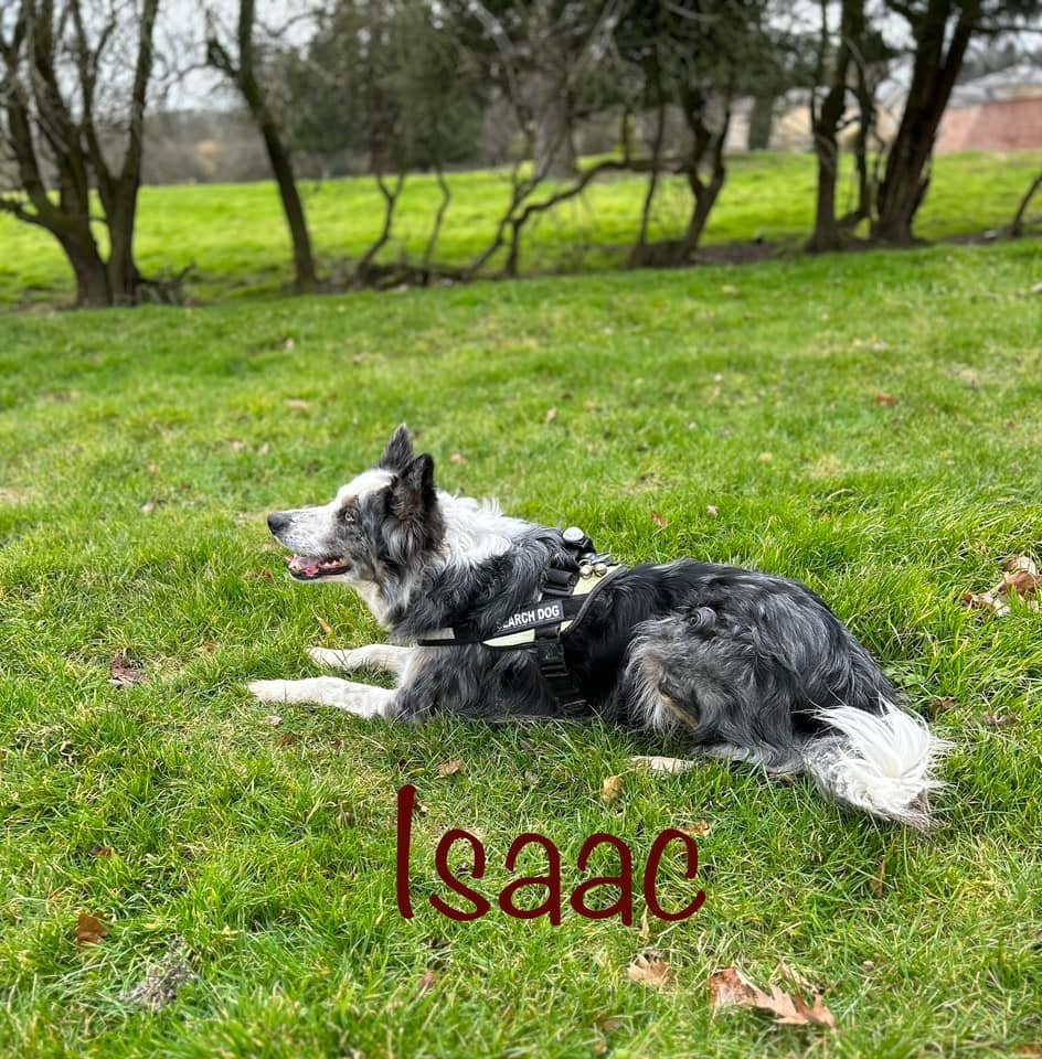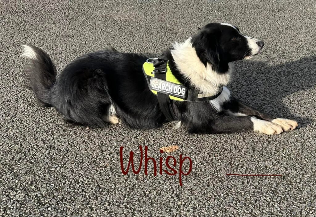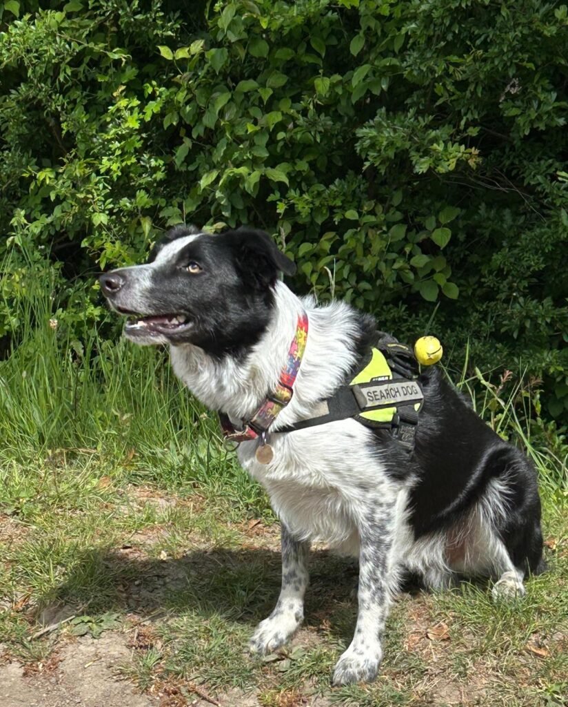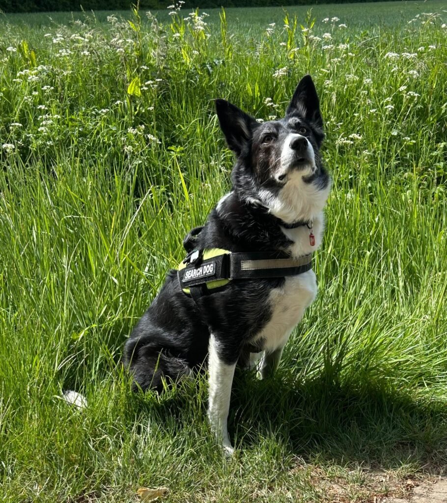 Wilson is a Tri Chocolate Border Collie. He didn’t have the best start in life and was quite poorly for a while, now he is a thriving hyperactive boy. He is a very fast worker when searching. At home he is very fussy and loves a cuddle but is an excitable wriggler. He loves a good walk but not so keen to swim.